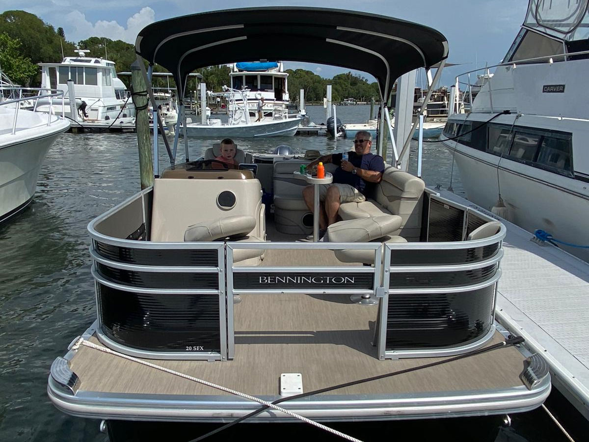 Our 20' Pontoon Rental can accommodate up to 8 people and is equipped with everything you will need to set sail. A Palm Harbor Charter's boat rental is an activity for all to enjoy and is perfect for exploring all the beautiful sites of Palm Harbor, Anclote Key, Tarpon Springs, The North Sand Bar, and Three Rooker Island.
