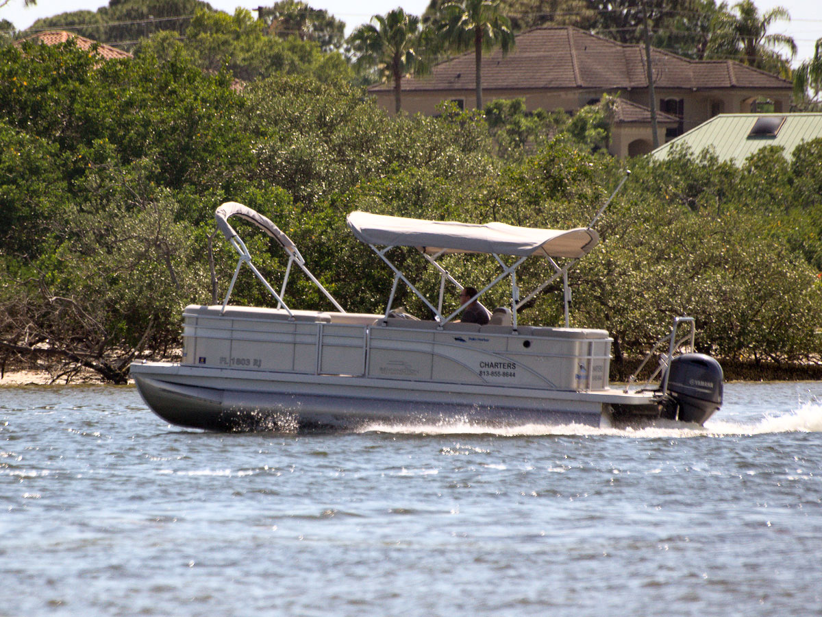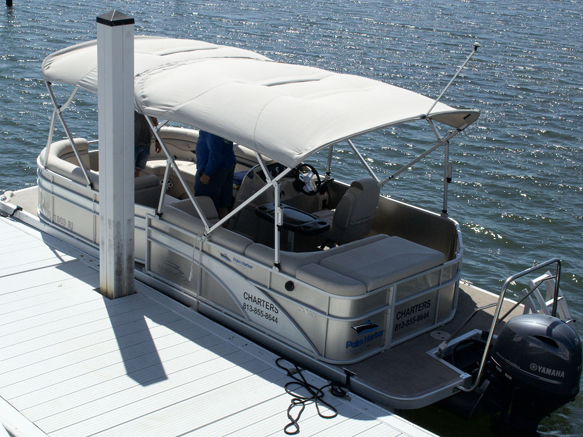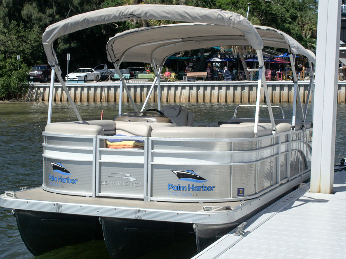 Our 22 Foot Tritoon Rental can accommodate up to 10 people and is fully equipped with a complete or partial canopy, stereo, and GPS navigation. This large Tritoon boat rental is an activity for all to enjoy and is perfect for exploring all the beautiful sites of Palm Harbor, Anclote Key, Tarpon Springs, The North Sand Bar, and Three Rooker Island.